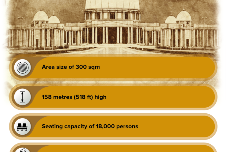 Located in Yamoussoukro, the capital of Côte d'Ivoire, the Notre-Dame de la Paix basilica is the largest Catholic religious building in the world. The basilica is built on an area ...