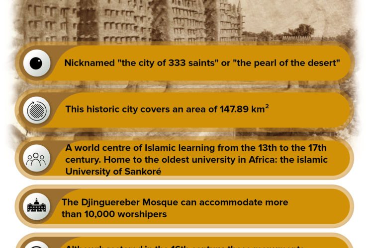 Timbuktu is located near the loop of the Niger river, at the point where it is closest to the Sahara. Nicknamed “the city of 333 saints” or “the pearl of ...
