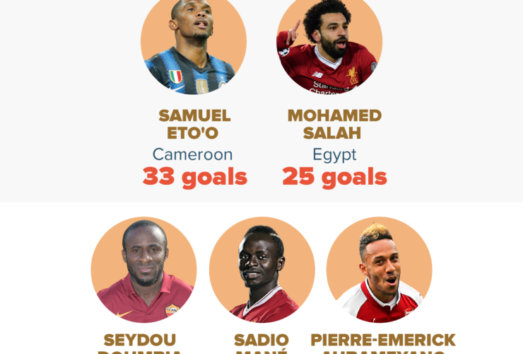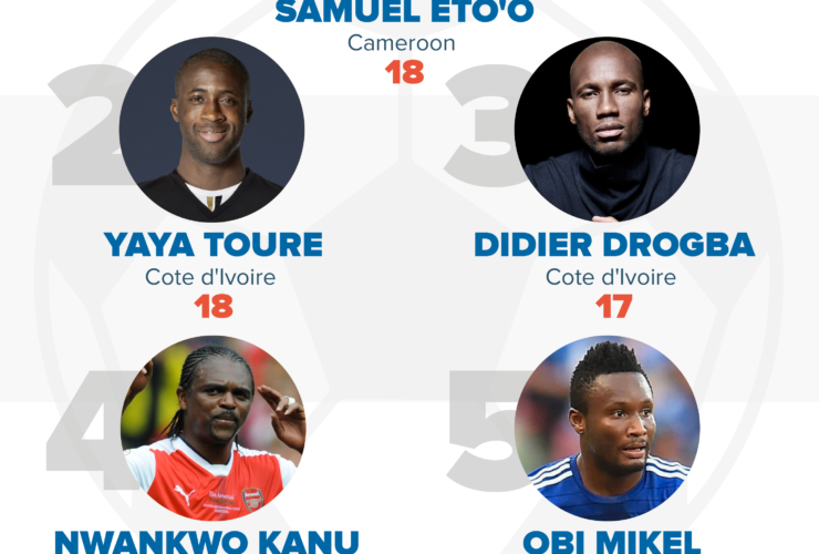 Didier Drogba, Samuel Eto’o, Emmanuel Adebayor ... are these great African players who have shone in major occasions in the UEFA Champions League. The top 10 African scorers are: Didier ...
